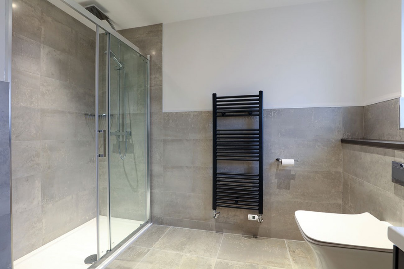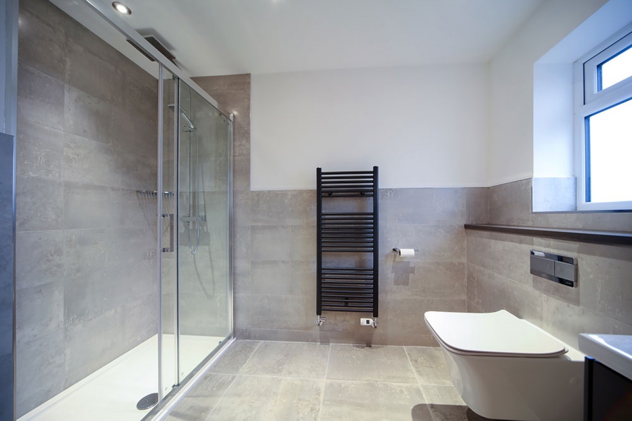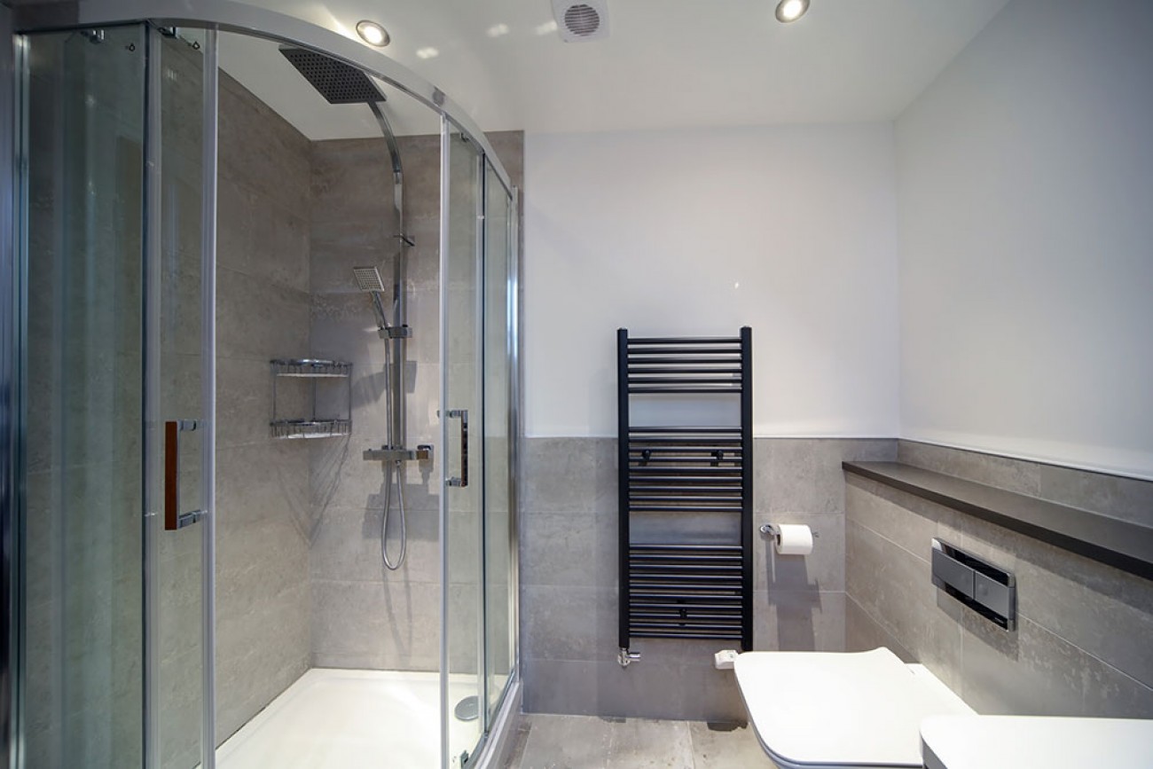 Careful planning and contemporary design give the en-suite an airy feel with an illusion of space.