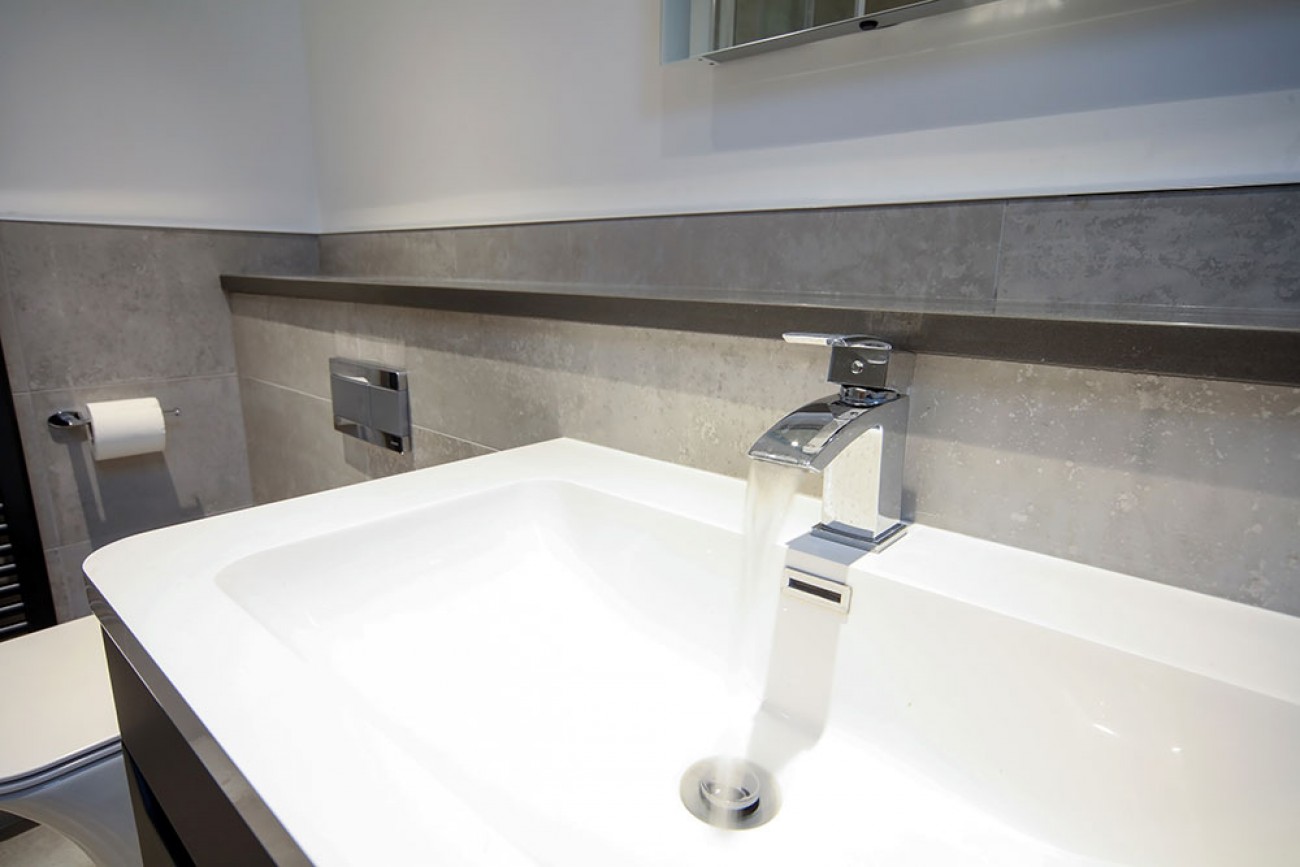 This project consisted of supplying and installing all three bathrooms in a luxury new build, facing the marshes in Parkgate, Neston. This extra special location called for that extra special design and finish. The main bathroom boasts contemporary clean lines, the en-suite is strikingly stark, and the downstairs bathroom, has a unique style of its own.